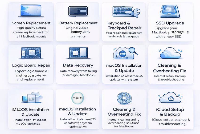 Some of the common MacBook repair services we handle include: